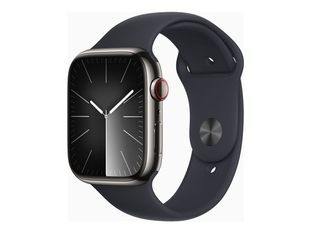 45 mm - rustfritt grafittstål - smartklokke med sportsbånd - fluorelastomer - midnatt - båndbredde: M/L - 64 GB - Wi-Fi, Bluetooth, UWB, LTE - 4G - 51.5 g
