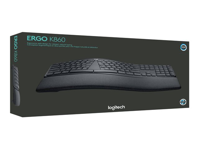 ERGO K860 er et delt ergonomisk tastatur som er utviklet for bedre holdning, mindre belastning og mer støtte. Du skriver naturlig på en buet, delt tasteramme som forbedrer skriveholdningen din. Den unike formen reduserer muskelbelastningen på håndledd og underarmer - hendene og skuldrene får en mer avslappet holdning.