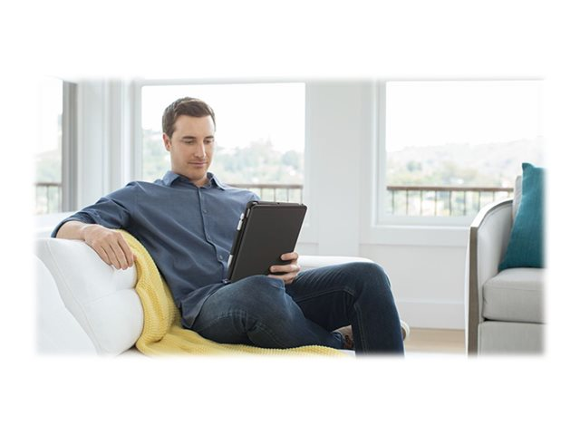 Slim Folio tar mobil databehandling til nye høyder. Nå kan du skrive som om du bruker en bærbar PC, uansett hvor du tar med deg iPad-en. Etuiets slanke, lette utforming gjør det enkelt å bruke og ta med seg, samtidig som det beskytter iPad-en mot støt, riper og søl. Uansett hvor du arbeider, enten det er på et cafébord, et skrivebord eller til og med i fanget, kan Slim Folio låse nettbrettet i perfekt vinkel for skriving og stå stødig på alle underlag.