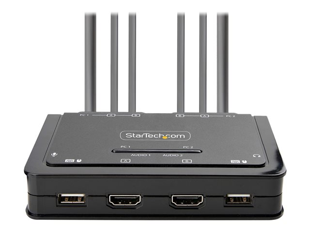 - Dual 4K 60 Hz monitor KVM switch - enables switching between two USB-A and HDMI-enabled desktops to share a mouse, keyboard, audio, and dual-4K 60 Hz HDMI displays