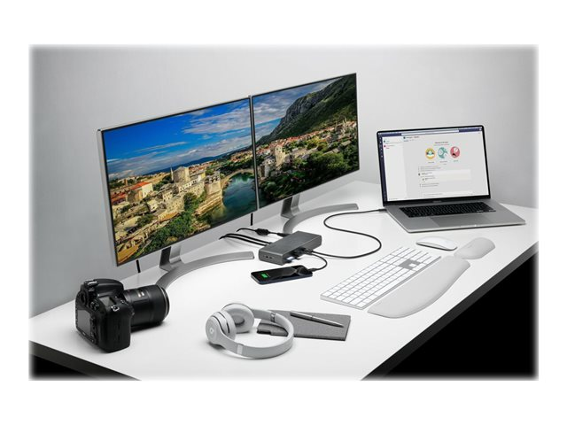 The SD5700T Thunderbolt 4 Dual 4K docking station offers premium Thunderbolt benefits now, and well into the future; compatible with Thunderbolt 4-enabled Windows 10 laptops and backward compatibility with Thunderbolt 3 MacBooks running macOS 11 (Big Sur) or later, supports Thunderbolt 3, Thunderbolt 4, USB-C and USB4 accessories and provides full power delivery, regardless of how many devices are connected. Features include 11 ports, Single 8K @ 30 Hz, or up to Dual 4K @ 60Hz video, 40Gbps data transfer speeds, UHS-II SD 4.0 card reader speeds, and more.