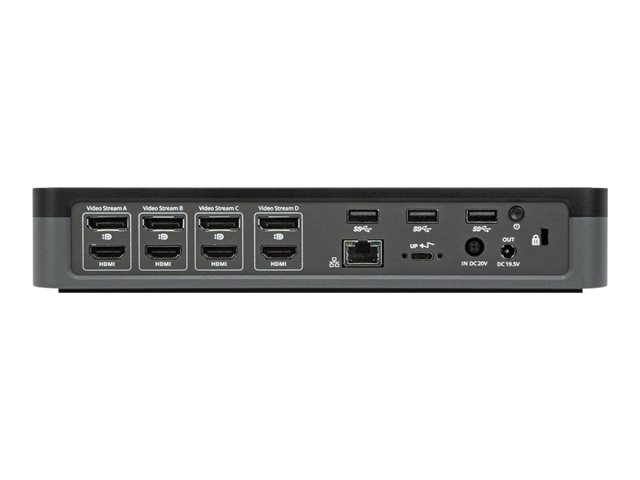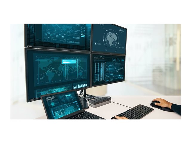 Boost productivity and performance with the world's first enterprise-class universal docking station to deliver four 4K extended displays. Ideal for large enterprises - the Targus USB-C Universal Quad 4K (QV4K) Docking Station maximizes workstation viewing. Dual DisplayLink DL-6910 chip technology supports up to four DisplayPort (3840 x 2160 p60) or HDMI (3840 x 2160 p50) displays. The docking station includes numerous additional ports to connect your essential USB 3.0 peripherals and Ethernet network.