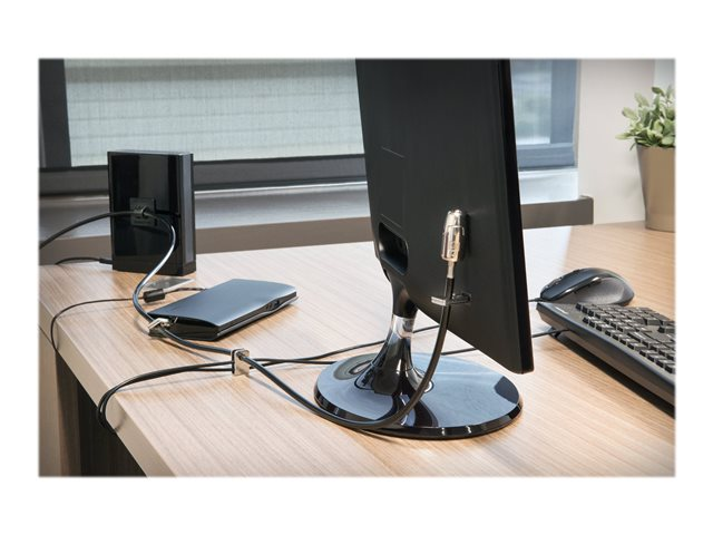 - 2.4m (8-foot) carbon steel cable is cut-resistant and anchors to desk, table or any fixed structure