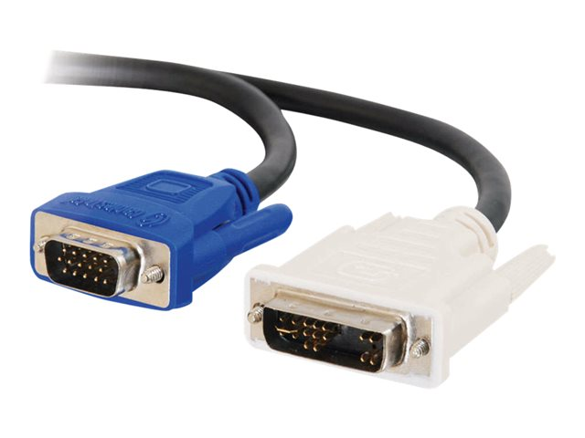 - Connects a VGA port on a computer to a monitor with a DVI-I connector