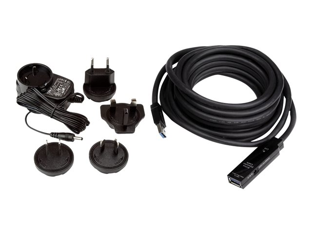StarTech.com 16.4ft Active USB 3.0 Extension Cable with AC Power Adapter - Shielded - Male to Female USB USB 3.1 Gen 1 Type A (5Gbps) Extender (USB3AAEXT5M) - USB-forlengelseskabel - USB-type A (hann) til USB-type A (hunn) - USB 3.0 - 5 m - aktiv - svart - for P/N: PEXUSB3S2EI, PEXUSB3S42, PEXUSB3S7, ST7300U3M, ST7300USB3B, SVA5H2NEUA, USB3SAA3MBK