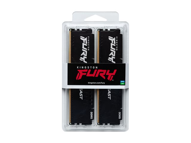 Kingston FURY Beast - DDR5 - sett - 16 GB: 2 x 8 GB - DIMM 288-pin - 6000 MHz / PC5-48000 - CL40 - 1.35 V - ikke-bufret - on-die ECC