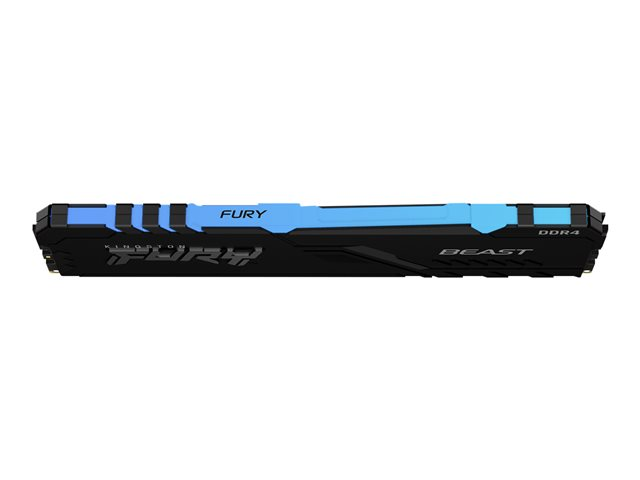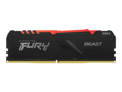 Kingston FURY Beast RGB delivers a boost of performance and style with high speeds, aggressive styling and RGB lighting that runs the length of the module for smooth and stunning effects. It features Plug-and-Play automatic overclocking at high speeds and is both Intel XMP-ready and ready for AMD Ryzen. FURY Beast RGB stays cool with its stylish, low-profile heat spreader.