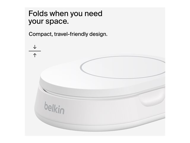 The Belkin BoostCharge Pro wireless charging stand is tailored for the modern cellular phone user, offering efficient wireless charging with its 15 watts of power. It features a convertible design for use as both a pad and a stand, suiting various charging needs. The stand ensures your device remains securely in place thanks to its magnetic fixation and non-slip base. Made from 60% recycled post-consumer plastic, the BoostCharge Pro is an eco-friendly choice that does not compromise on quality or performance. It complies with FCC, Qi, REACH, RoHS, and USB-IF standards, demonstrating its commitment to safety and high-quality standards.