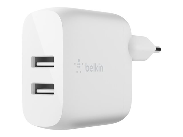Belkin BoostCharge - Strømadapter - 24 watt - 2 utgangskontakter (USB) - hvit WCD001VF1MWH