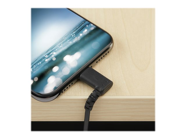 StarTech.com 3ft (1m) Durable USB A to Lightning Cable, Black 90° Right Angled Heavy Duty Rugged Aramid Fiber USB Type A to Lightning Charging/Sync Cord, Apple MFi Certified, iPhone 12 Pro - iPhone 7/8/11/11 Pro - Lightning-kabel - Lightning hann vinklet til USB hann - 1 m - dobbeltisolert - svart