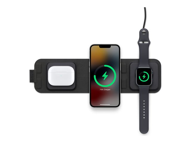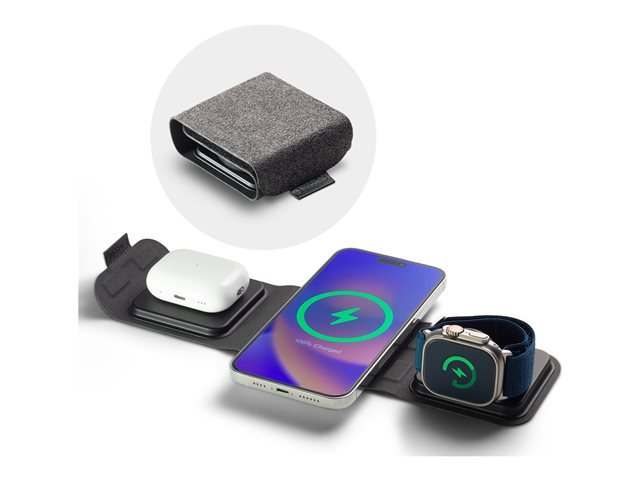 mophie 3-in-1 - Trådløs ladepute - med MagSafe + AC-strømadapter - 15 watt - grå - Europa 401311507