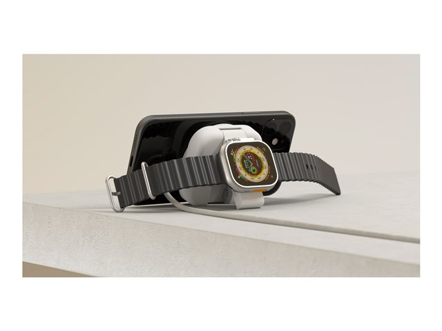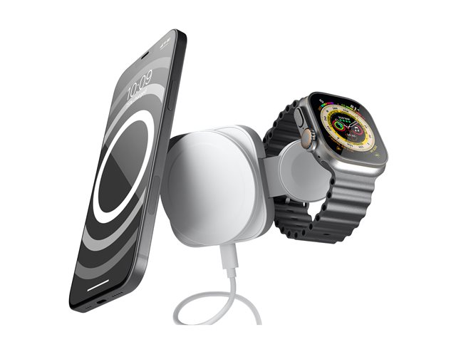 - Lader både mobiltelefoner og smartklokker