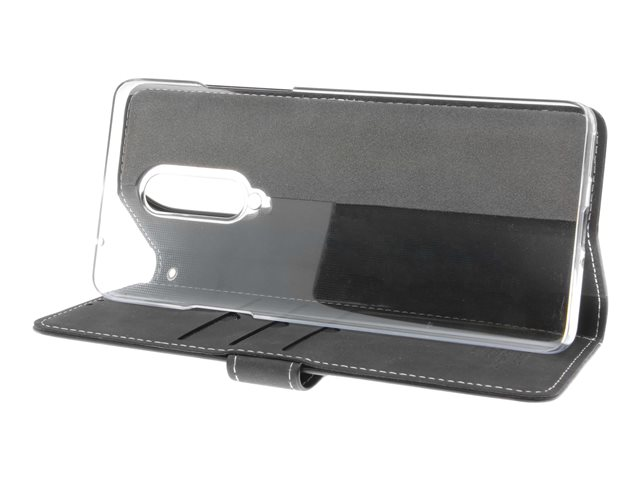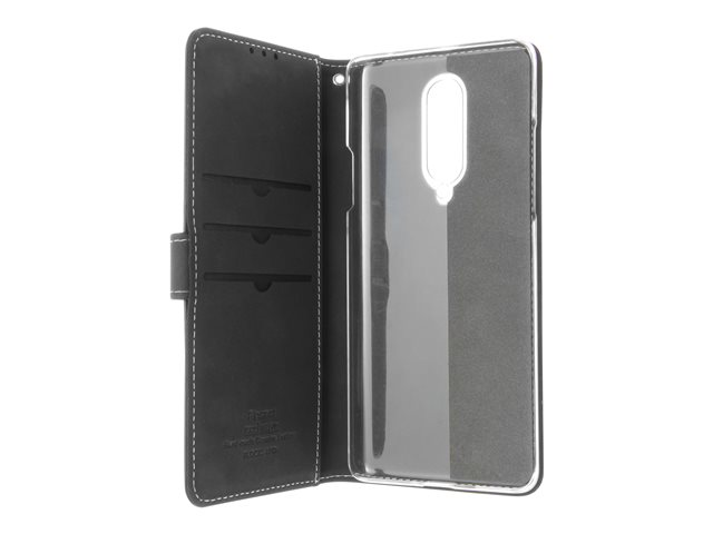 Insmat Exclusive Flip Case - Lommebok for mobiltelefon - ekte skinn, papir, kartong, polykarbonat, aluminiumsfolie - svart - for OnePlus 8 650-2854