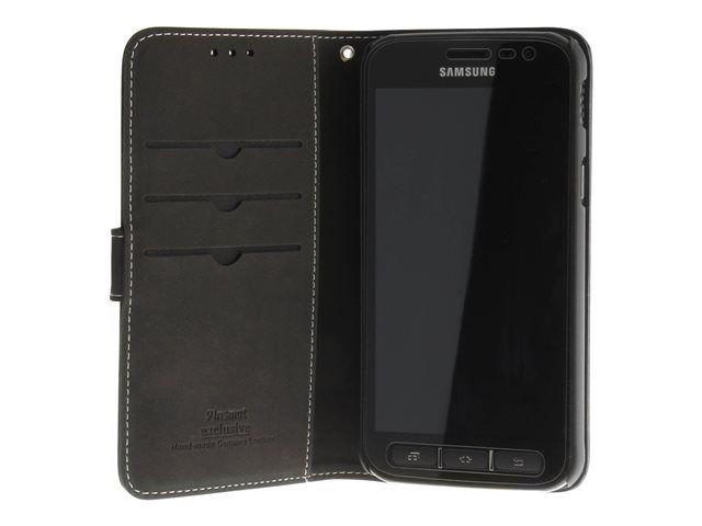 Insmat Exclusive Flip Case - Lommebok for mobiltelefon - ekte skinn - svart - for Samsung Galaxy Xcover 4