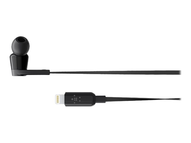 Belkin ROCKSTAR - Ørepropper med mikrofon - i øret - kablet - Lightning - lydisolerende - svart - for Apple 10.5-inch iPad Pro; iPad mini 4; iPhone 7, 7 Plus, 8, 8 Plus, X, XR, XS, XS Max