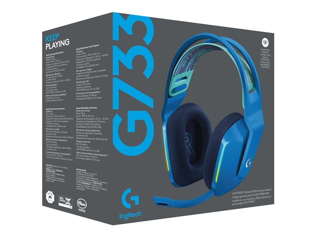 Logitech G G733 LIGHTSPEED Wireless RGB Gaming Headset - Hodesett - full størrelse - 2,4 GHz - trådløs - blå