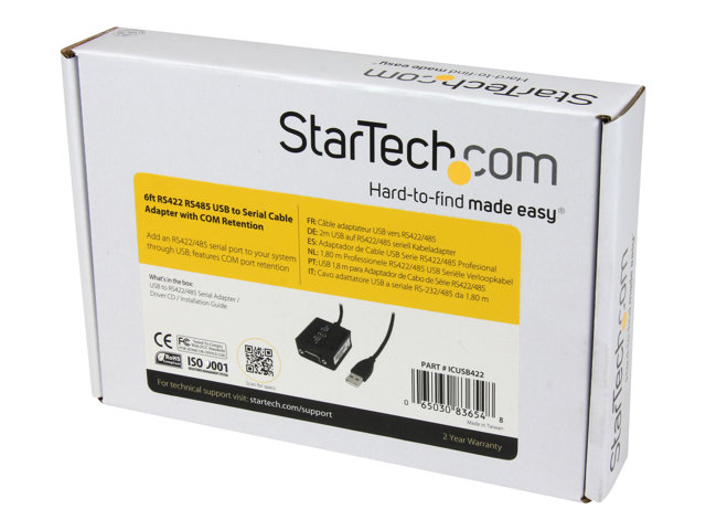 StarTech.com 6 ft Professional RS422/485 USB Serial Cable Adapter w/ COM Retention (ICUSB422) - Seriell adapter - USB - RS-422/485