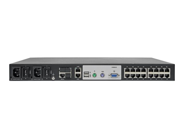 - 16-port KVM switch with Virtual Media support and laptop USB console port for versatile server control