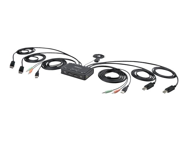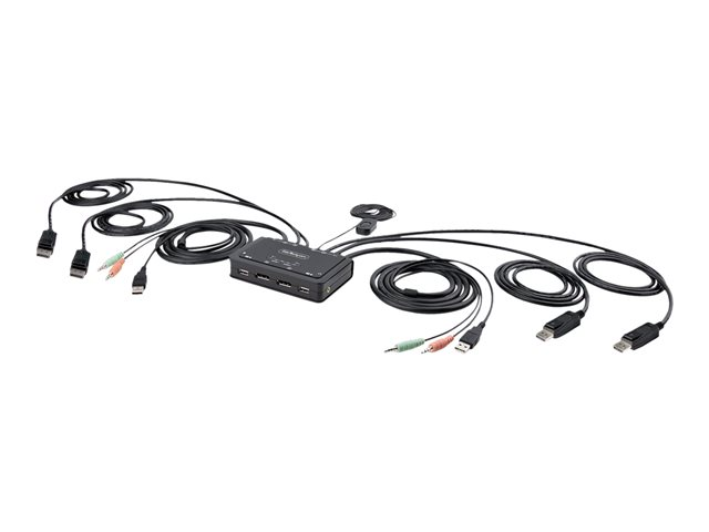 StarTech.com 2-Port Dual-Monitor DisplayPort Cable KVM Switch, 4K 60Hz, Compact KVM with 5ft/1.5m USB-A/DisplayPort/Audio Integrated Cables, Bus Powered - Remote Push Button/Hotkey Switching (C2-DD46-UA2-CBL-KVM) - KVM / lyd / USB-svitsj - kompakt - 2 x KVM/lyd/USB - 1 lokalbruker - stasjonær C2-DD46-UA2-CBL-KVM
