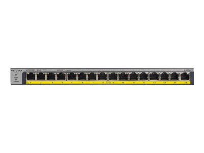 NETGEAR GS116LP - Switch - 16 x 10/100/1000 (PoE+) - stasjonær, rackmonterbar, veggmonterbar - PoE+ (76 W) - DC-strøm