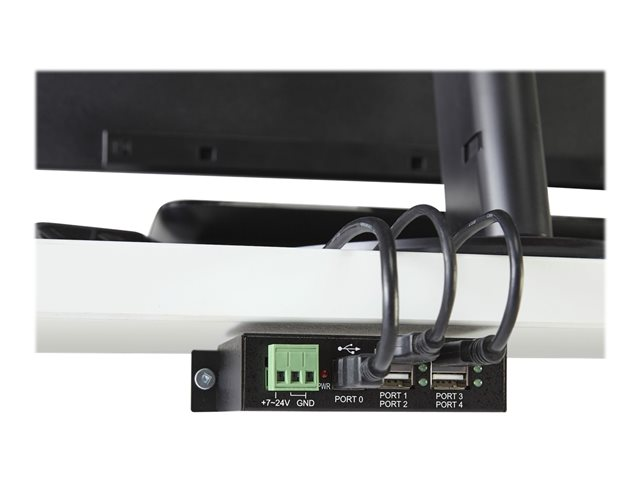 This industrial USB hub delivers reliable performance with a metal, heavy-duty housing. It supports wide-range 7-24V DC terminal block input, giving you the flexibility to power the hub as required, based on your own power input capabilities.