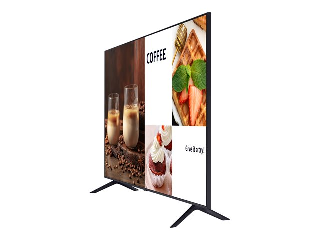 The sleek, bezel-less design and slim look of the Samsung BE85C-H ensure it fits perfectly in any setting, complemented by the included Slim Feet stand for stability and style. With the Eco Sensor feature, it also adapts to the room's lighting conditions, providing an optimal viewing experience while conserving energy. Whether for home entertainment, digital signage, or as a dynamic part of your business, the Samsung BE85C-H is designed to impress.