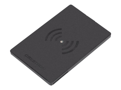 The Crestron RFID-USB is a sleek RFID card reader that integrates into supported room scheduling applications and custom room control projects via a TSW-70 series or TSS-70 series touch screen. The RFID-USB installs next to the touch screen, allowing users to easily authenticate with or communicate to the touch screen by scanning an RFID card. The RFID-USB also integrates with a Crestron control system for custom room control or access projects. The RFID-USB supports a range of LF and HF technologies (125 kHz and 13.56 MHz) as well as NFC and Bluetooth Low Energy (BLE) communications to satisfy numerous RFID use cases.
