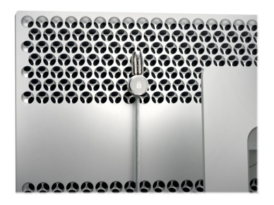 Now there's an elegant way to secure your Mac Pro and Pro Display XDR. The Mac Pro and Pro Display XDR Locking Kit perfectly complements the Apple design aesthetic, without the use of tools or modifications to the equipment. This easy-to-install ingenious solution uses the honeycomb plate on the chassis of the device as the anchor point. Includes 8 ft. carbon steel cable and lock. TAA-compliant.